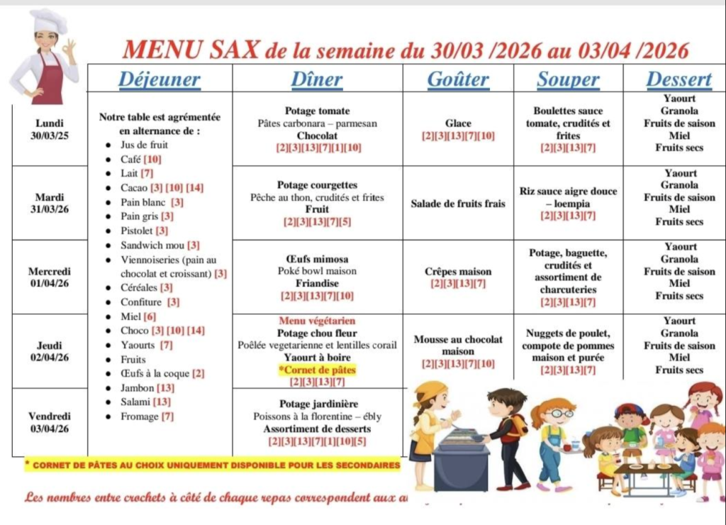 Menun internat filles, Menus semaine Implantation Sax 30 octobre 2019 / Ajouter aux fovoris Post Views: 11 829 Partager : Partager sur X(ouvre dans une nouvelle fenêtre) X Partager sur Facebook(ouvre dans une nouvelle fenêtre) Facebook Plus Partager sur LinkedIn(ouvre dans une nouvelle fenêtre) LinkedIn Partager sur WhatsApp(ouvre dans une nouvelle fenêtre) WhatsApp